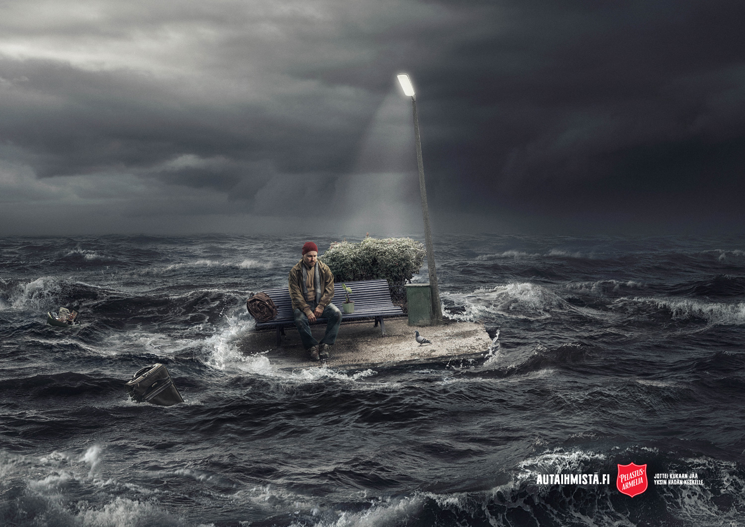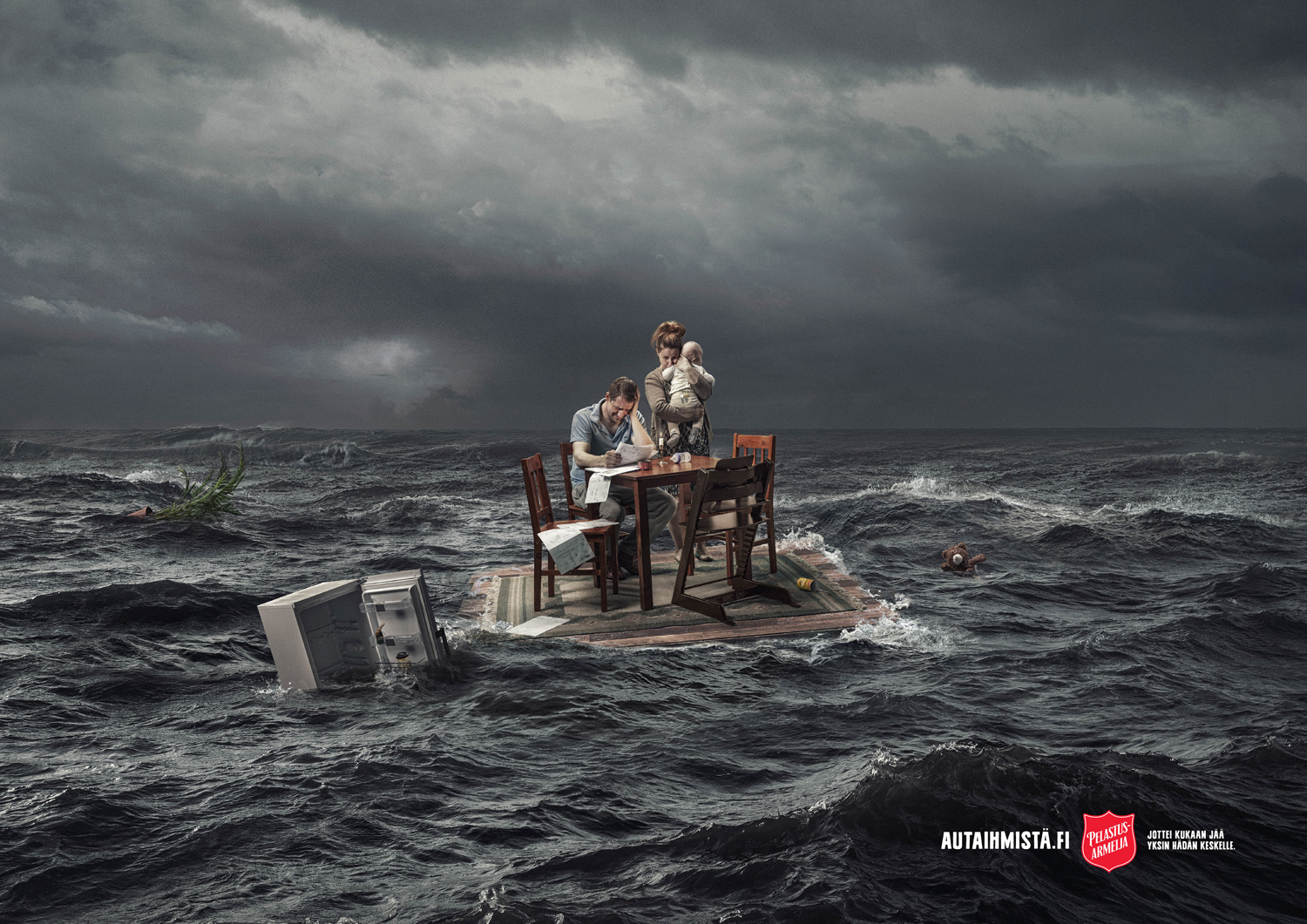 Kampanja dramatisoi sitä, kuinka elämän myrskyissä ihminen ja kokonainen perhe kokee jäävänsä yksin hädän keskelle. Turvaverkot katoavat alta, ja ihmiset ovat vaarassa syrjäytyä ja jäädä sosiaalisten kontaktien ulkopuolelle.